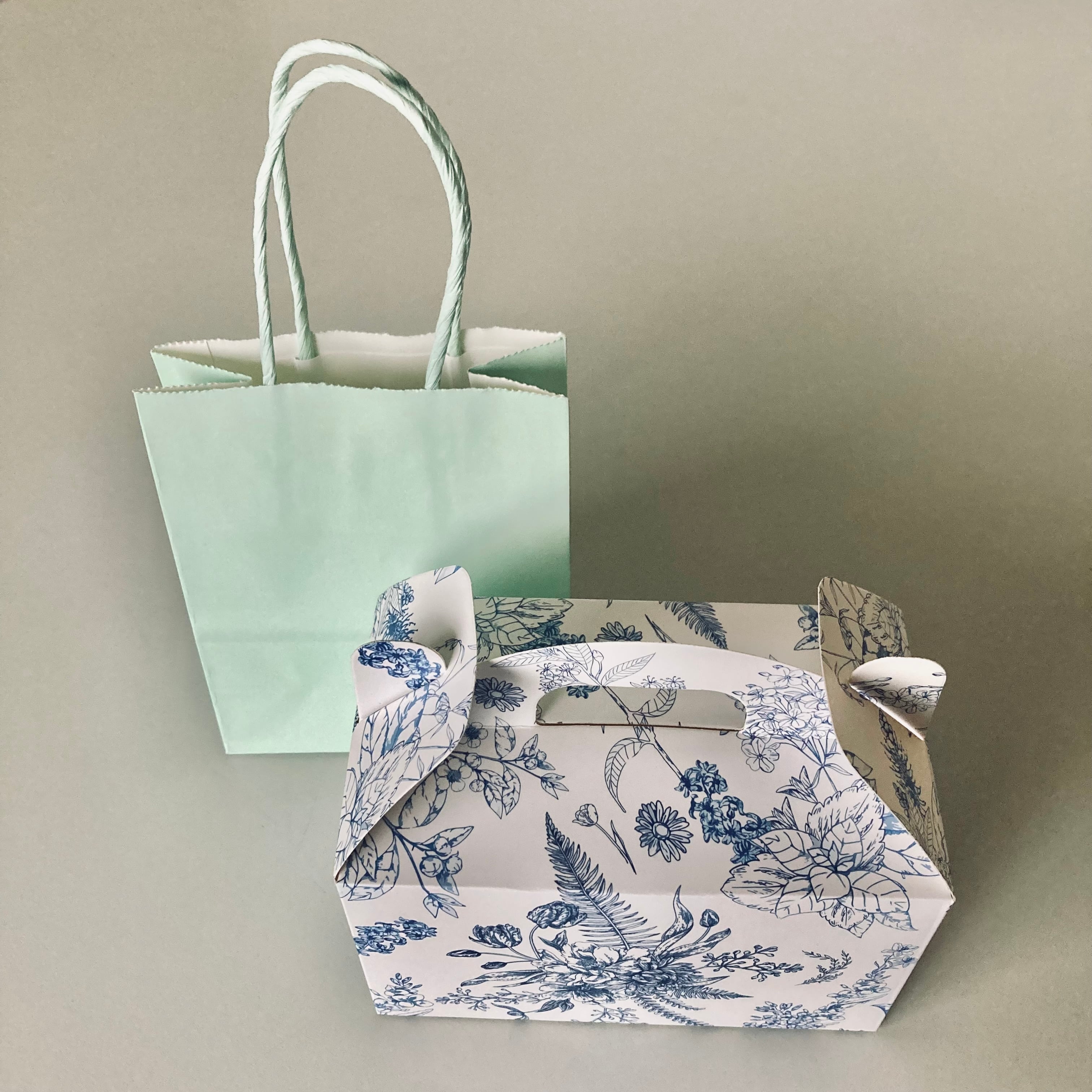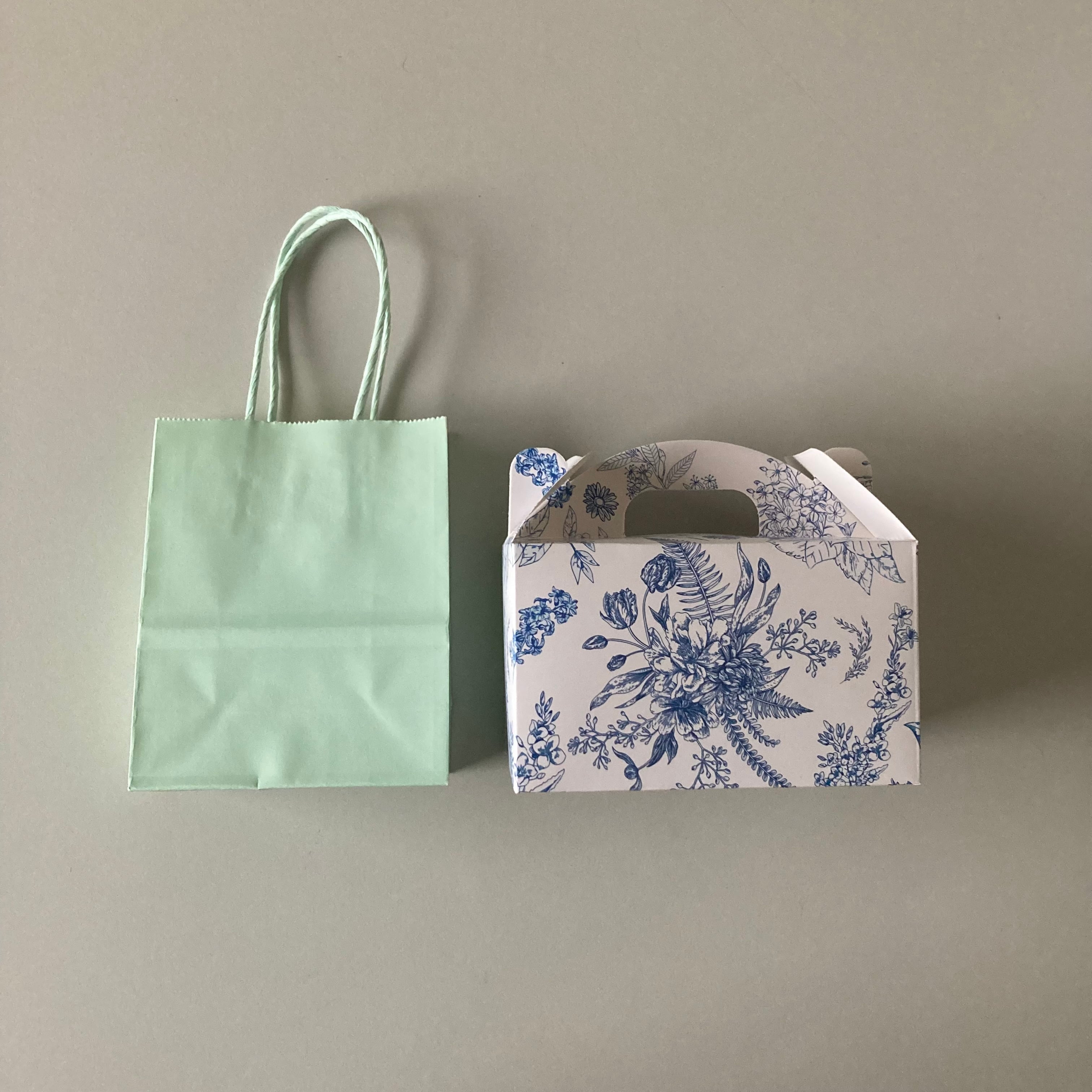 小さな手提げ袋と箱をご用意しています。