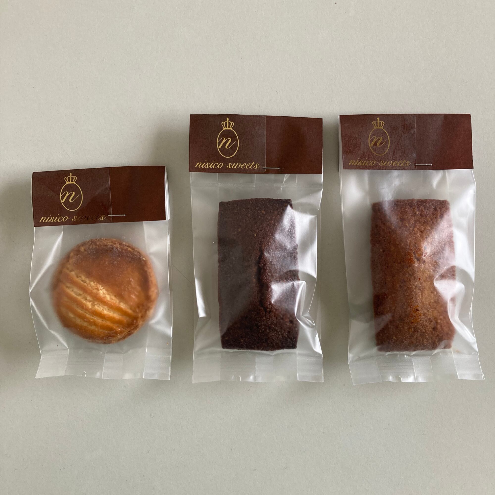【内容量】 バターガレット 1個、フィナンシェ1個、ショコラフィナンシェ1個